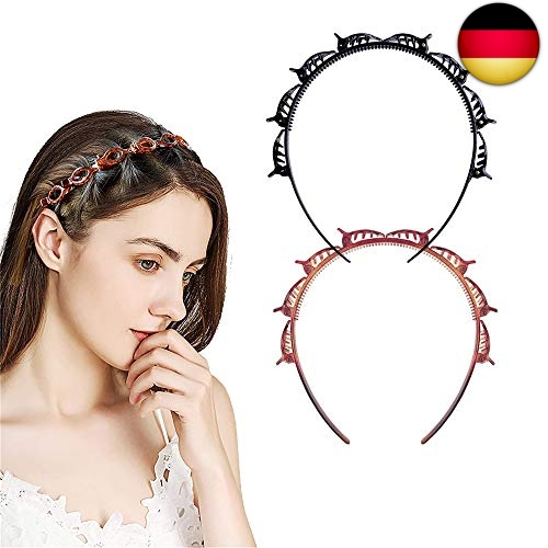 Haarreifen mit Klammern, 2 Stück Hair Twister Haarreifen, Double Bangs Hairstyle Hairpin, Haareifen mit Clips/Doppelknall Frisur Haarnadel/Stirnbänder Haarband/Haarreif mit Zähnen/Haarreifen Damen